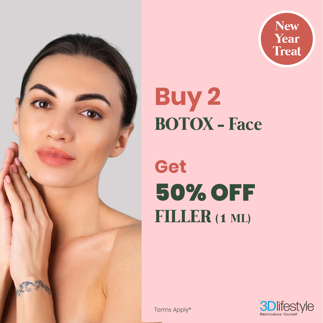 Book your Botox treatment for the face and enjoy 50% OFF on 1ml Filler. Reduce fine lines, lift your features, and enhance facial contours with expert precision all while keeping your look naturally refreshed.