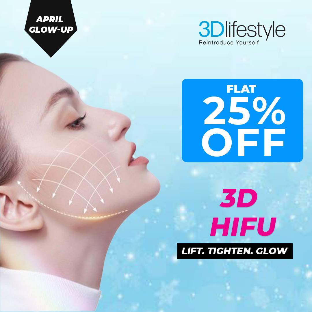 3D HIFU lifts and tightens your skin naturally. It firms the face and gives a more youthful look without any surgery. Get FLAT 25% off on HIFU treatment to lift and tighten any area.